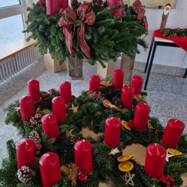 Vielen Dank sagen wir unserem Elternbeirat, der diese schönen Adventskränze für uns gebunden hat.