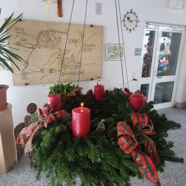 Als Einstimmung auf die kommende Adventszeit feierten wir am Dienstag eine schöne, besinnliche Adventskranzsegnung in der Pausenhalle.