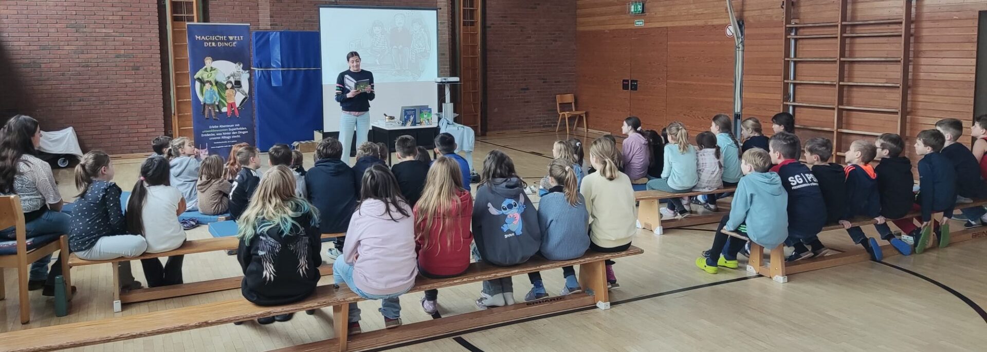 Autorenlesung mit Alexandra Wagner – ein bewegtes Erlebnis für unsere Grundschule Unsere Schülerinnen und Schüler durften heute eine ganz besondere Autorenlesung erleben: Die Kinderbuchautorin Alexandra Wagner verwandelte unsere Turnhalle in eine lebendige Bühne voller Geschichten, Bewegung und Begeisterung. Mit Titeln wie „Sumpfmumpf und die Hoffnung“ sowie „Die magische Welt der Dinge – Das Geheimnis von…