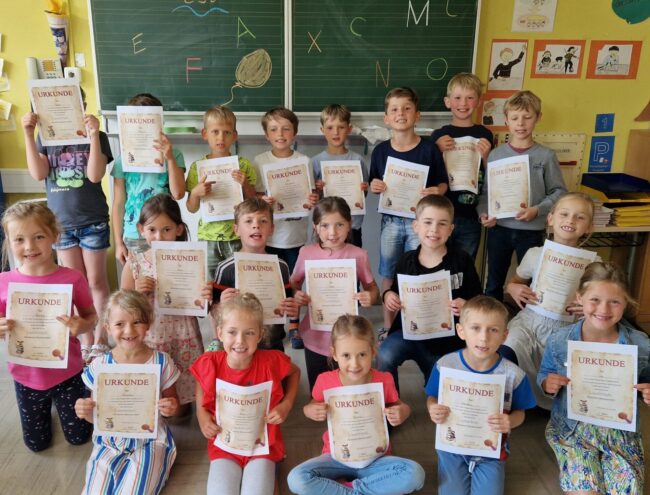 Buchstabenfest der Klasse 1 Sehr stolz sind unsere Erstklässler, dass sie nun alle Buchstaben lesen und schreiben können! Deshalb durften sie beim Buchstabenfest an verschiedenen Stationen viele spannende Dinge entdecken (Buchstabenrätsel, Buchstabenpuzzle, Wörter erfinden, ABC-Lied, Namensschild für ihr Kinderzimmer, Buchstabenverstecken, Buchstaben bauen usw.). Zur Brotzeit gab es dann Buchstabenkekse, aus denen die Kinder selbstverständlich zunächst…