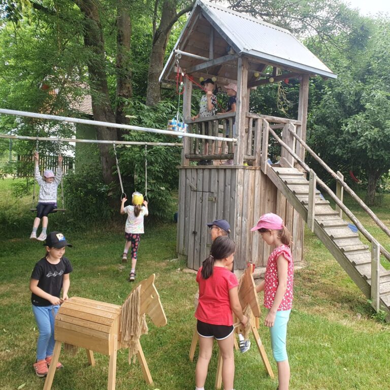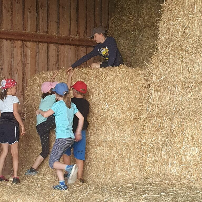 Neben all den lehrreichen und interessanten Sachen durfte auch noch auf dem Spielplatz im Garten und auf den Heuballen getobt werden.