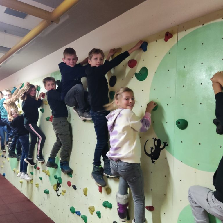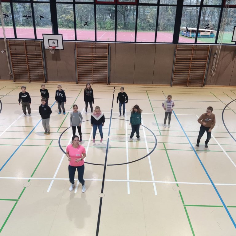 Unter anderem bewiesen die 4. Klässler in einer Sportstunde ihre Sportlichkeit beim Erlernen einiger Tanzelemente des “Jumpstyles”. Auch die Jungs machten hier begeistert mit.