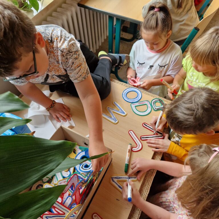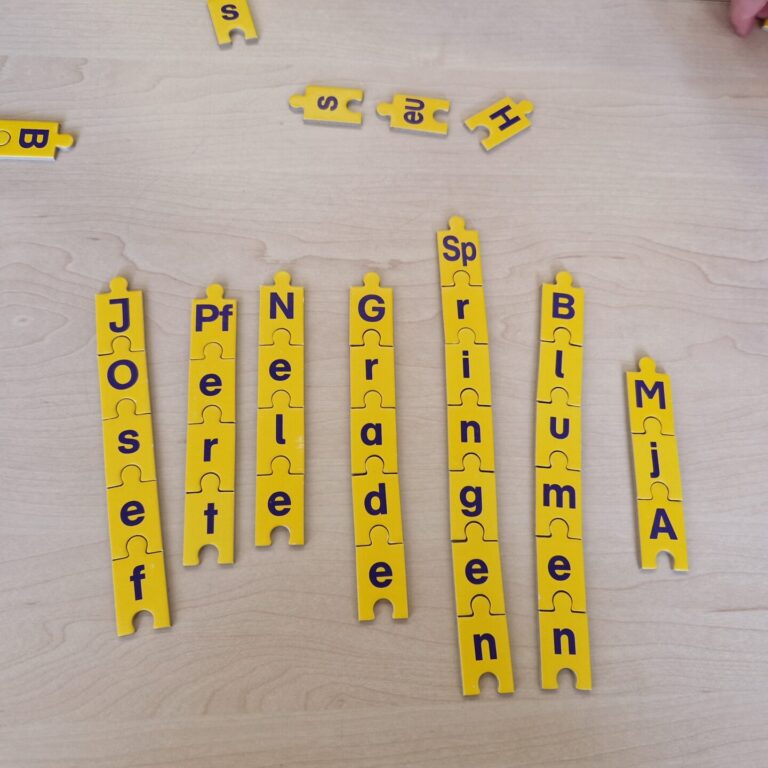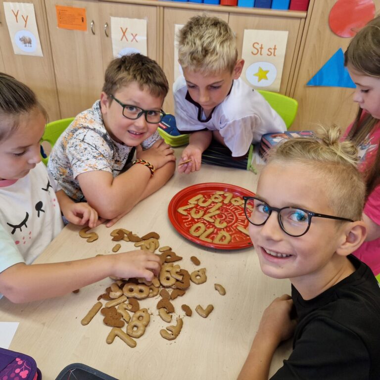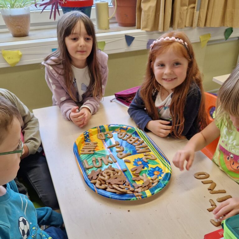 Das ist natürlich ein Grund zu feiern. An verschiedenen Stationen beschäftigten sich die Kinder sehr freudig mit Buchstaben. Da wurde zum Beispiel gepuzzelt, gefühlt, nachgespurt, Buchstaben- oder Wörterpuzzle gelegt und Buchstaben im Wimmelbild gesucht. Besondern Spaß machte auch das Gestalten von Wörtern mit Buchstabenkeksen. Abschließend durften die Kinder den Anfangsbuchstaben ihres Namens schön verzieren und als Erinnerung mit nach Hause nehmen, um damit eventuell die Kinderzimmertüre zu dekorieren.