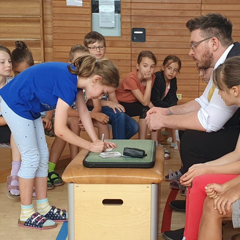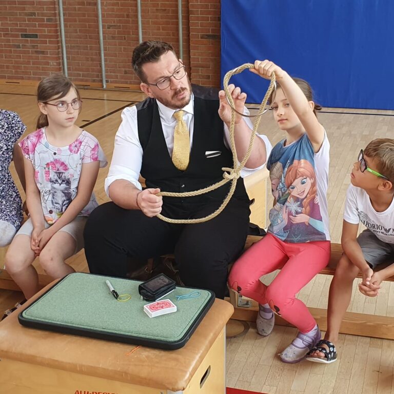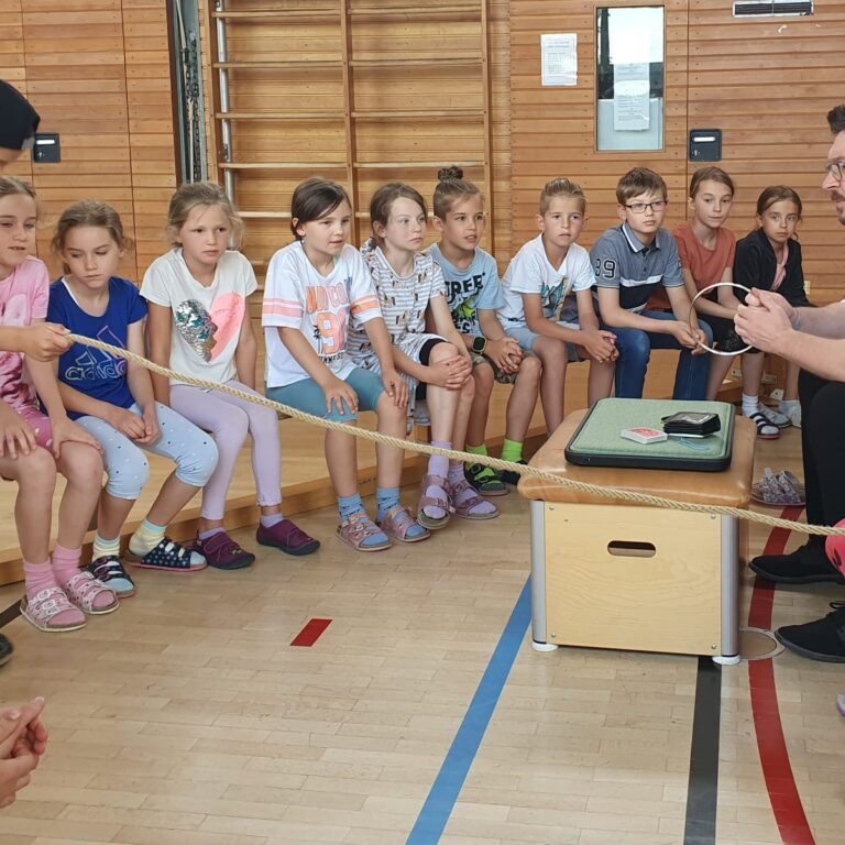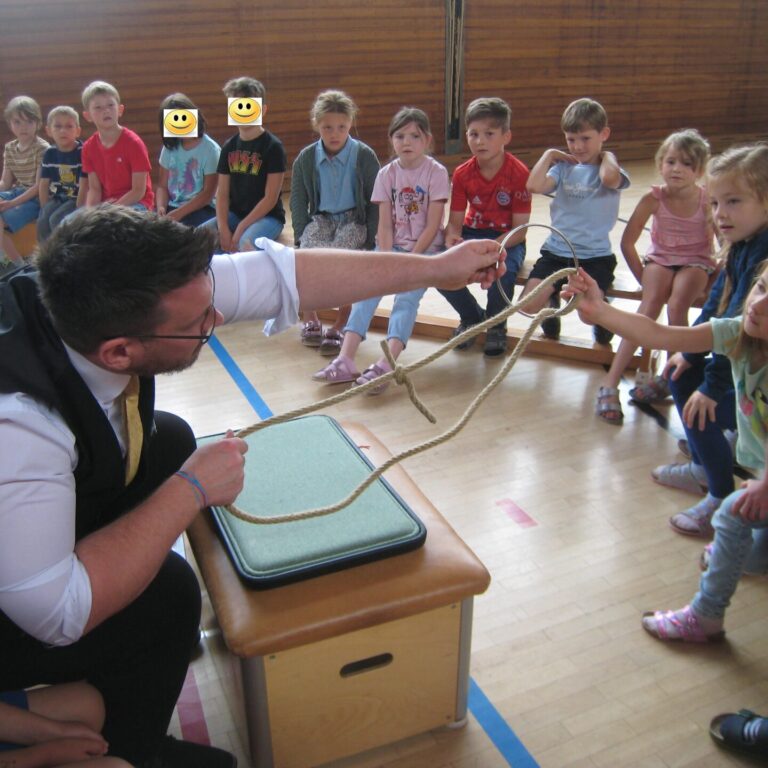 Alle tauchten wir gemeinsam ab in die fantastische Welt der Zauberei. Wir übten einen Zauberspruch und durften großartige Zaubertricks mit Seilen, Karten, Münzen schwebenden Gegenständen usw. bestaunen. Vielen Dank für diesen schönen und spannenden Vormittag.