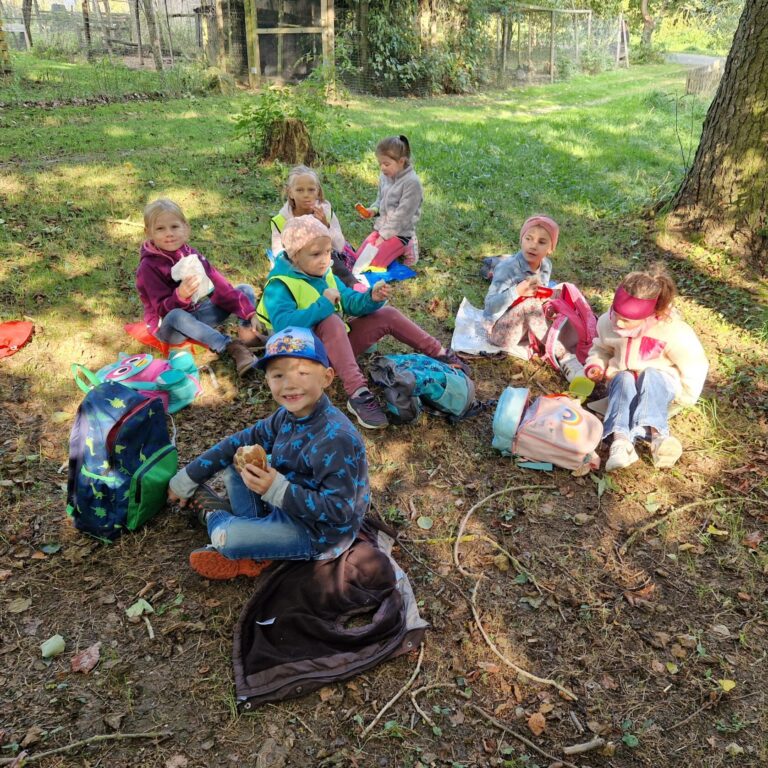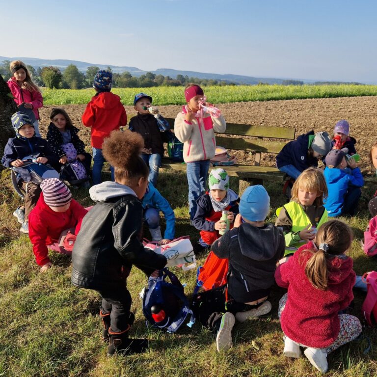 Ausgerüstet mit Rucksack, Brotzeit und guter Laune ging es los. Auch das Wetter spielte bestens mit. So marschierten wir bei strahlendem Sonnenschein auf den Wegen rund um Püchersreuth und Ilsenbach. Unser Weg führte uns vorbei an Wiesen und Feldern, durch Wälder, zu den Tieren und auch auf den schönen Spielplatz in Ilsenbach. Natürlich durfte zwischendurch eine kräftige Brotzeit nicht fehlen.