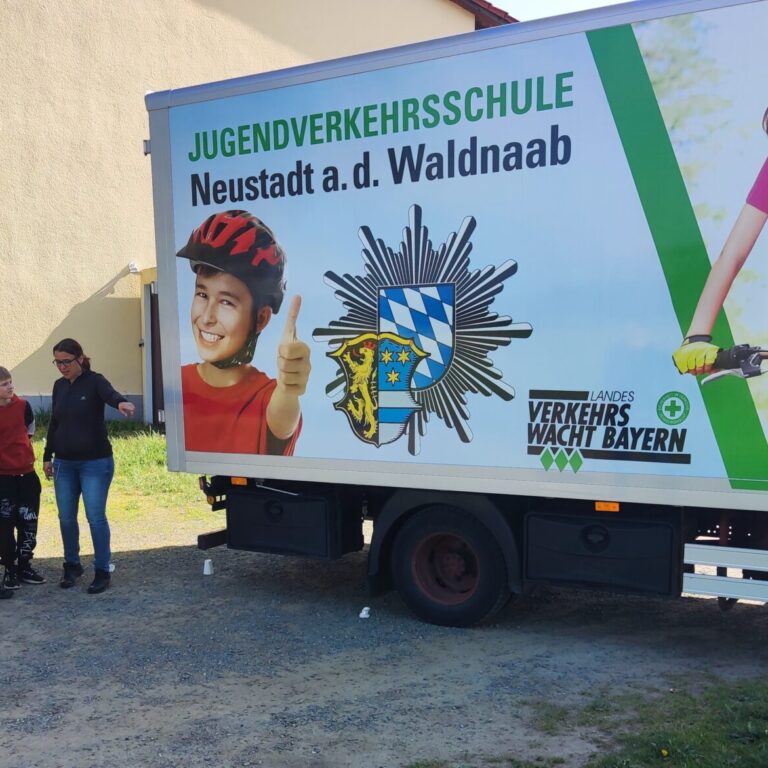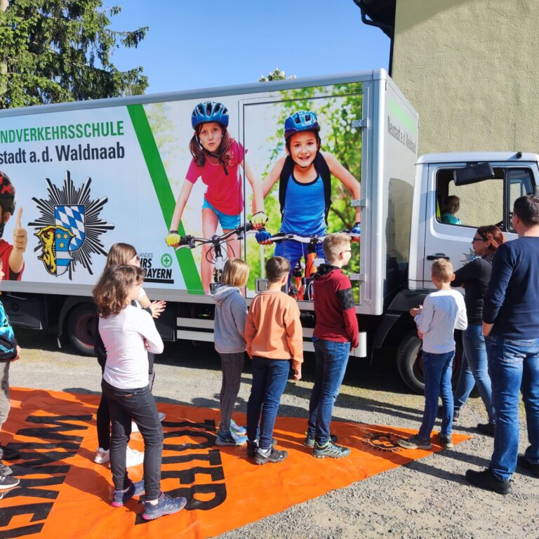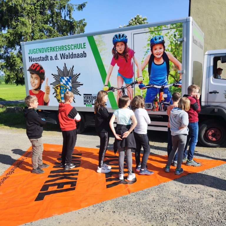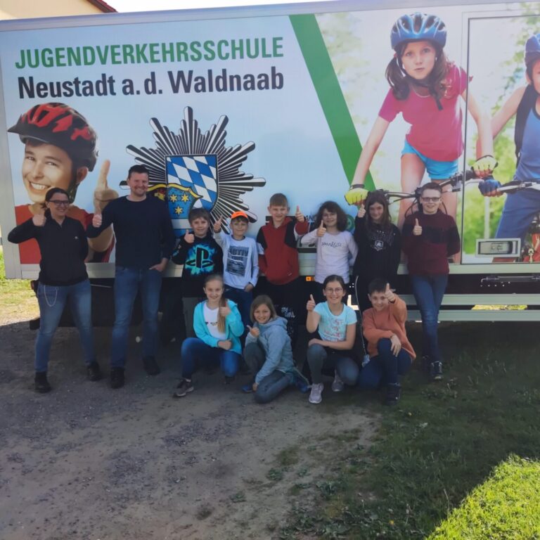 Am 25.05.2023 startete dann die 4. Klasse rund um das Schulgebäude und im Gemeindegebiet Püchersreuth in den Realverkehr. Unter der kompetenten Anleitung von Frau Wettinger und Herrn Horn, den zuständigen Verkehrserziehern der Polizeiinspektion Weiden, wurden noch einmal wichtige Regeln und Verhaltensweisen wiederholt und schwierige Situationen im Verkehr besprochen.