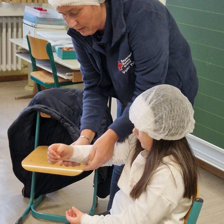 Auch in diesem Schuljahr durften sich unsere Schulkinder aus der dritten Jahrgangsstufe auf einen ganz besonderen Vormittag freuen: die engagierte Mitarbeiterin Frau Völkl des Bayerischen Roten Kreuzes bildete die Jungen und Mädchen in einem ersten Teil zu Juniorhelfern aus.