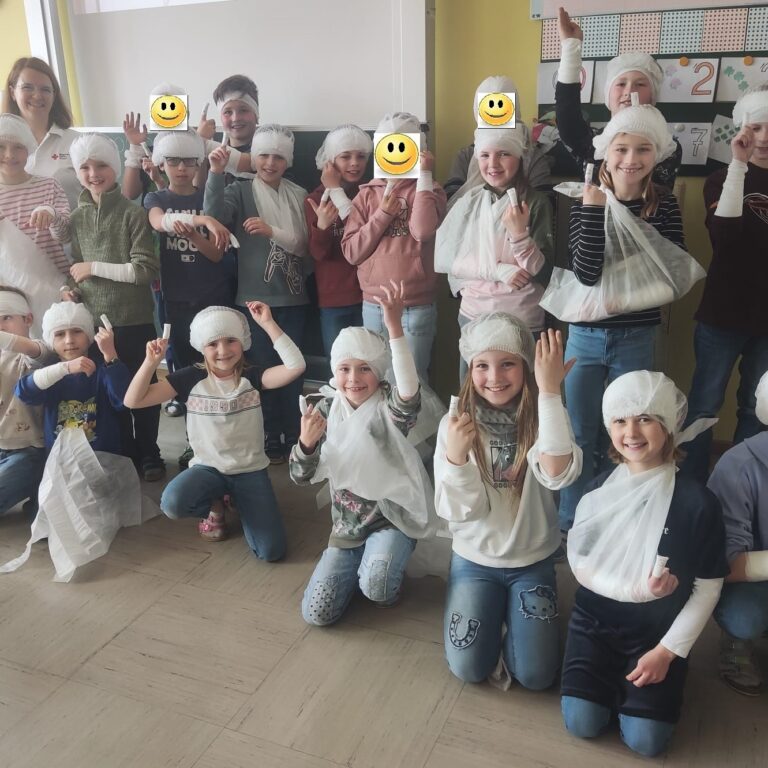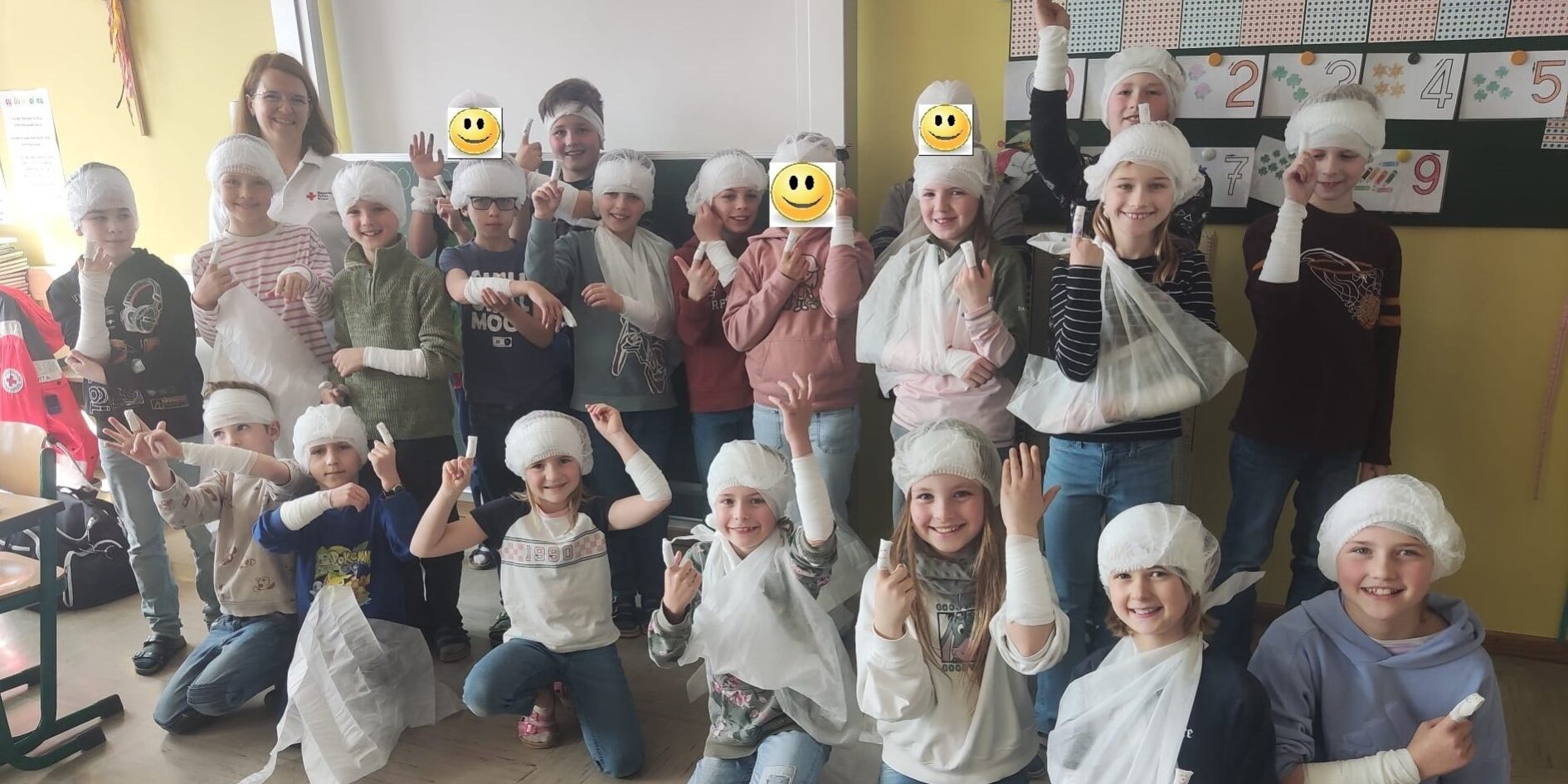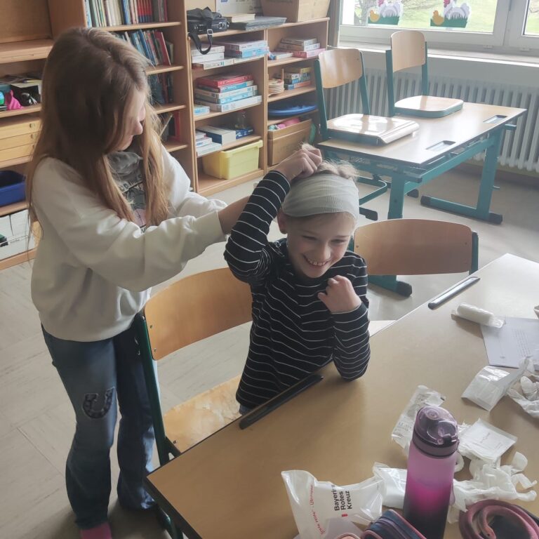 An zwei Vormittagen durften die Kinder der 3. und 4. Klasse unter der kompetenten Anleitung von Frau Melanie Ott vom Bayerischen Roten Kreuz ihre Ausbildung zum Juniorhelfer absolvieren.