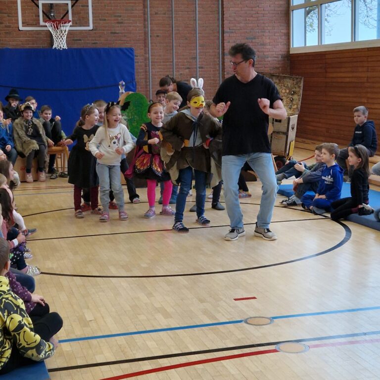 Schüler und Schülerinnen der 3. und 4. Klasse erhielten schon vor dem Gastspiel ihren Text und konnten sich auf ihre Rollen perfekt vorbereiten.