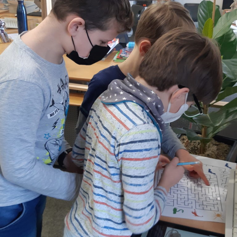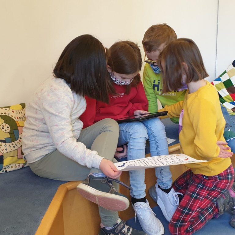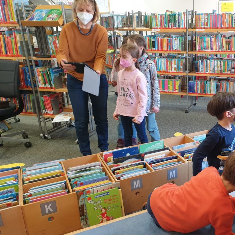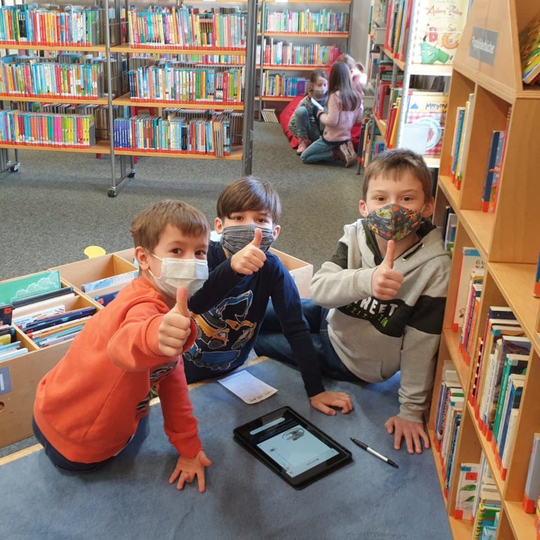 Im Rahmen dieser Aktion fuhren die Schülerinnen und Schüler der Klasse 1/2 und 2/3 nach Weiden in die Regionalbibliothek. Hier gestaltete Frau Dipl. Bibl. Ruth Neumann von der Regionalbibliothek für die Kinder einen gemeinsamen Lesespaziergang für Detektive. Als Grundlage für diesen Rundgang diente das Buch „Das Geheimnis im Labyrinth der Mumie“ von Sabine Kalwitski. Die Kinder lösten auf dem Tablet verschiedenste spannende Aufgaben und knifflige Rätsel zur Geschichte.