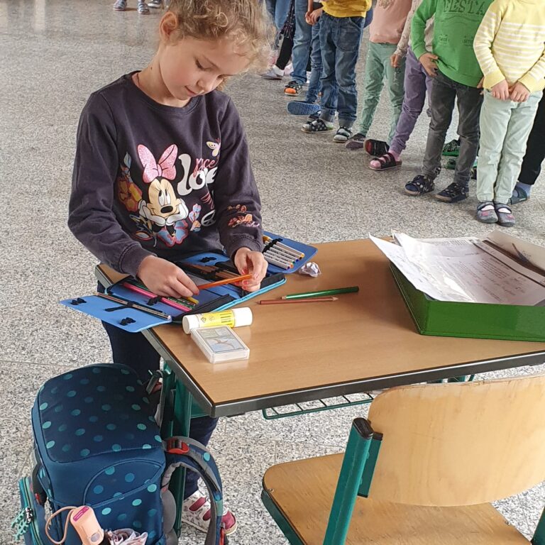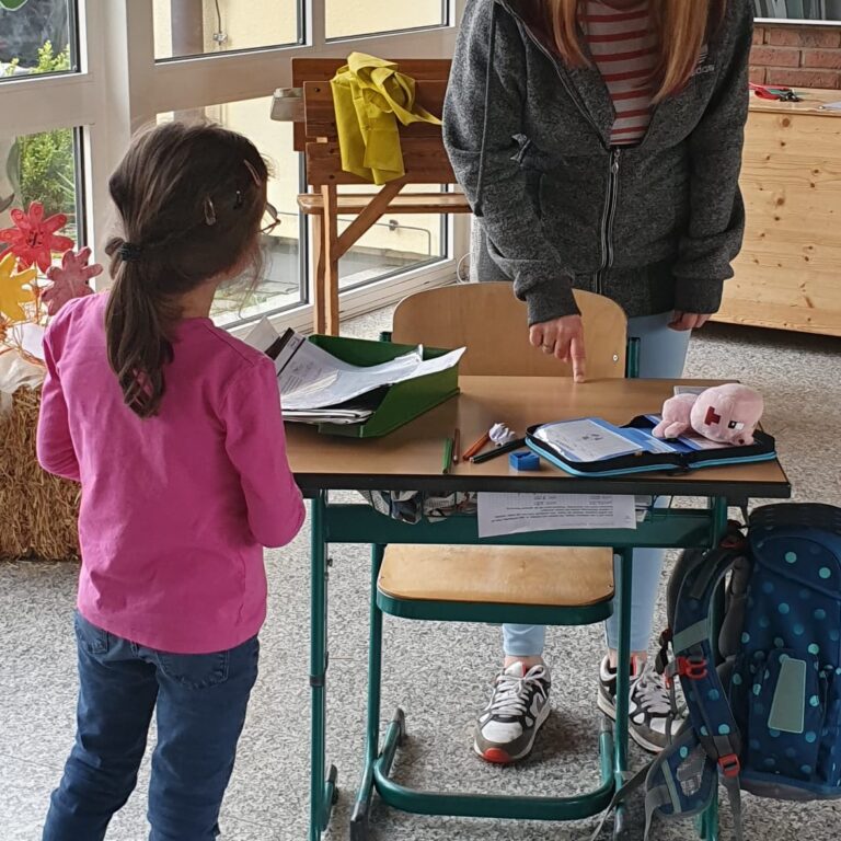 Klassenleiterin Frau Sabine Rudloff demonstrierte sehr eindrücklich wie wichtig ein ordentlicher und sauberer Arbeitsplatz sowie das Vorhandensein aller notwendigen Materialien für das erfolgreiche und nachhaltige Lernen ist.