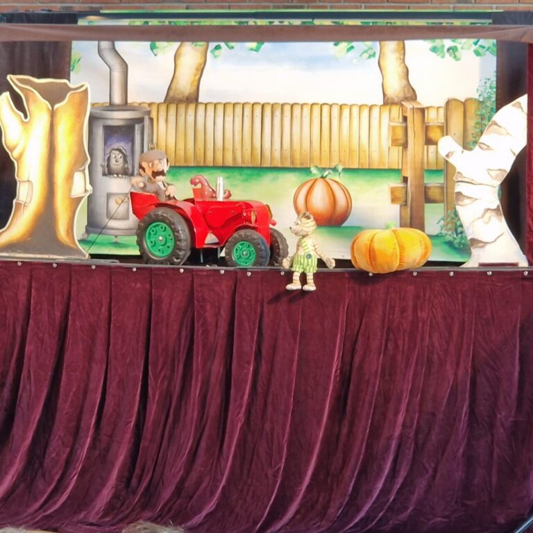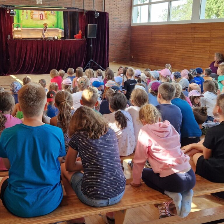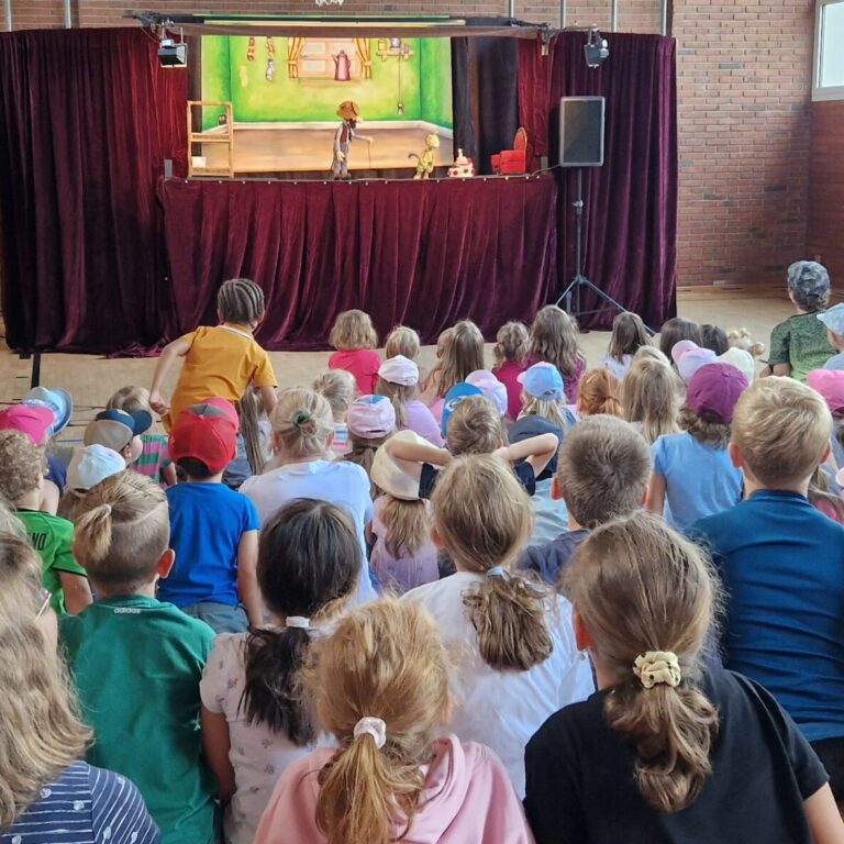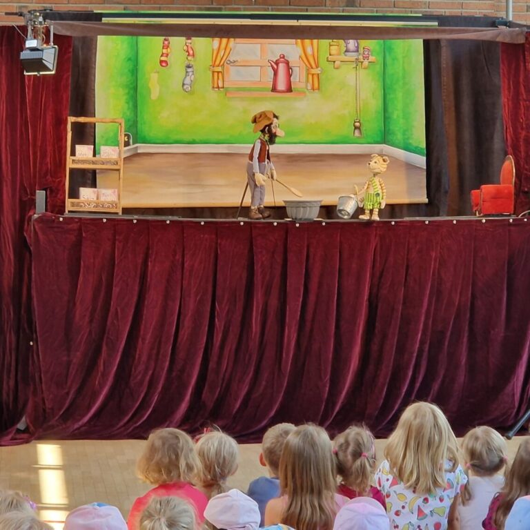 Heute besuchte uns das „Theater vom Rabenberg“. Als der Vorhang aufging, brachten die Stabpuppenspieler den Klassiker der Kinderliteratur „Pettersson und Findus – eine Geburtstagstorte für die Katze“ auf die Bühne.