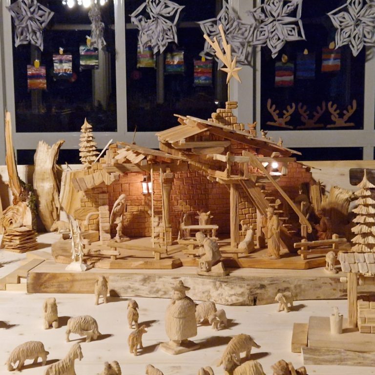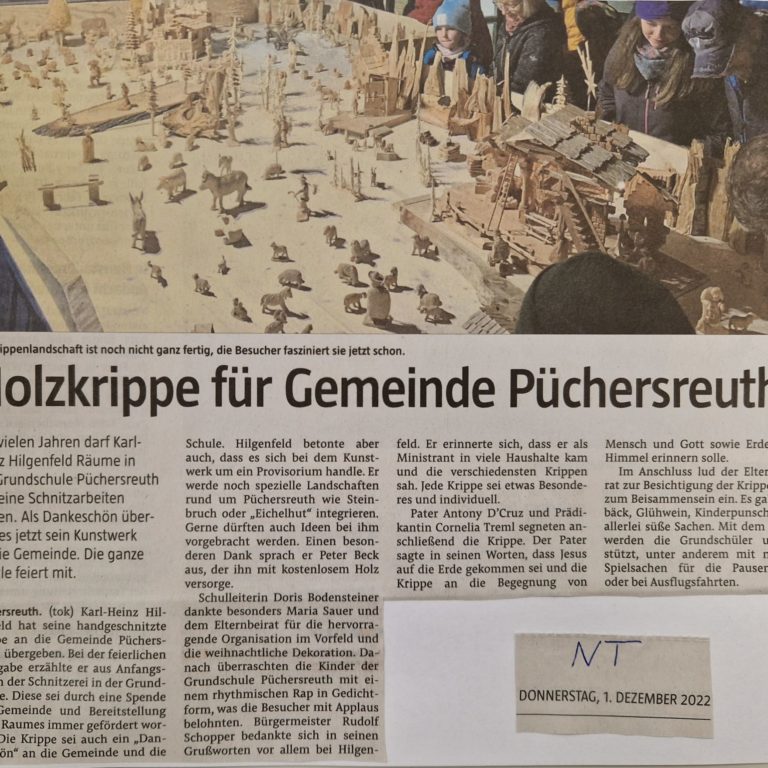 In einem offiziellen Festakt übergab der Schnitzer Herr Karl-Heinz Hilgenfeld aus Püchersreuth eine sehr schöne, detaillierte Weihnachtskrippe an die Gemeinde. Die Grundschule freute sich, diese aufwendige, handgeschnitzte Krippe präsentieren zu dürfen.