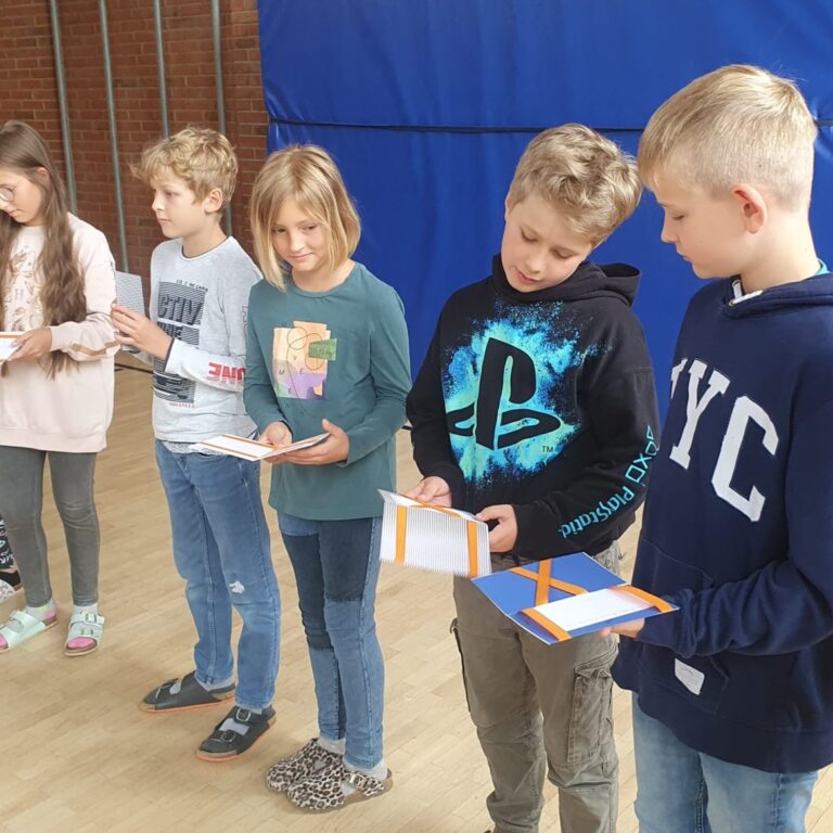 Um unsere “Großen” mit den besten Wünschen auf den neuen Weg zu schicken, bekam jedes Kind der vierten Jahrgangsstufe von einem Drittklasskind einen guten Wunsch für die Zukunft in einer Zauberkarte.