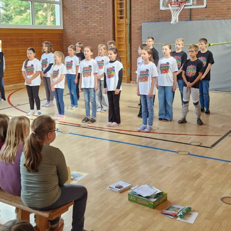 Am Donnerstag, den 31.Juli 2025, war der letzte Schultag vor den Sommerferien. Für die 4. Klasse war dies auch der letzte Tag an unserer Grundschule. Natürlich wurde dieser Abschied gemeinsam in der Turnhalle gefeiert.