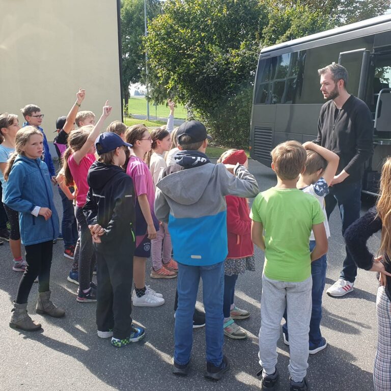 Anschließend durften die Schüler das Gelernte umsetzen. Dazu wurde am und im Bus geübt: