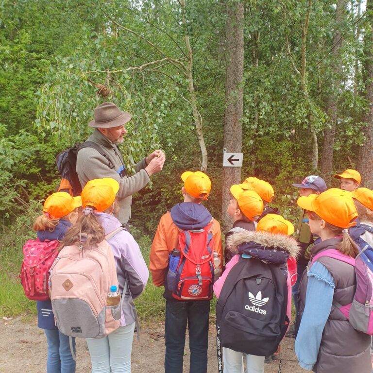 Gemeinsam mit ihrer Lehrerin Frau Barbara Förster und dem Förster ging es auf einem Rundgang mit verschiedenen Stationen durch den Wald. Im Vordergrund stand dabei nicht nur reine Wissensvermittlung, sondern auch das Erleben von Natur und Gemeinschaft in der Klasse.