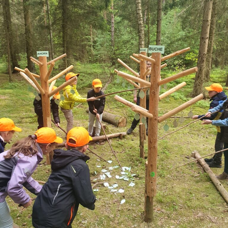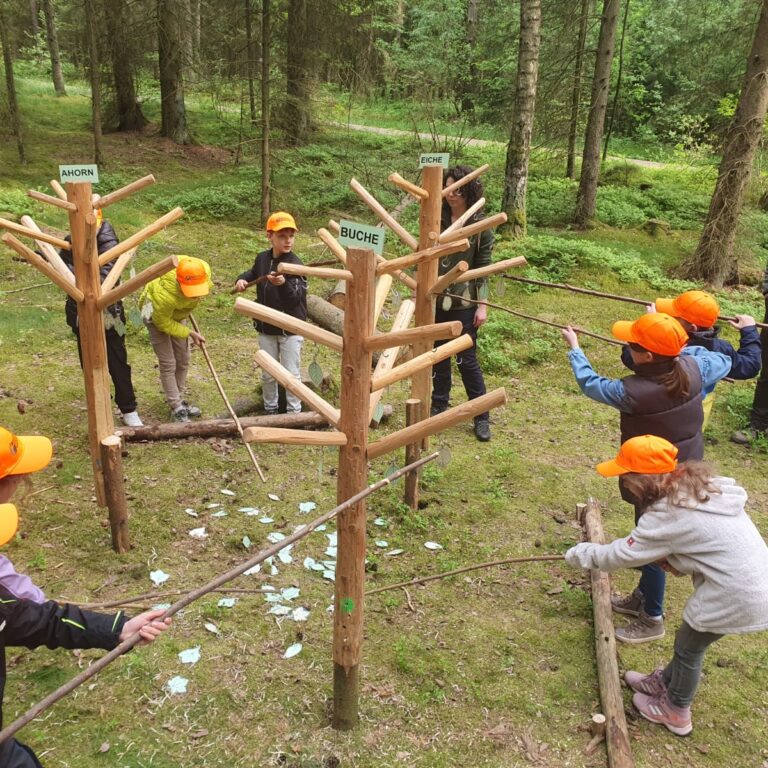So erkundeten die Schülerinnen und Schüler interessante Fragen: Welche Baumarten und Sträucher gibt es bei uns? Welche Tiere leben im Wald? Was ist nachhaltige Bewirtschaftung? Welche klimabedingten Herausforderungen gibt es?